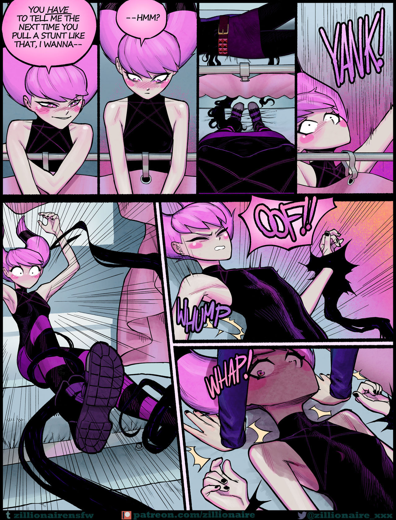 Seeing what she wants, Raven calls Beast Boy to activate the spell. Raven removes her pantyhose, modifying the spell so she now has Beast Boy’s cock, which she uses to punish Jinx. Jinx eagerly sucks it, while Beast Boy in the living room struggles to handle the intense pleasure.